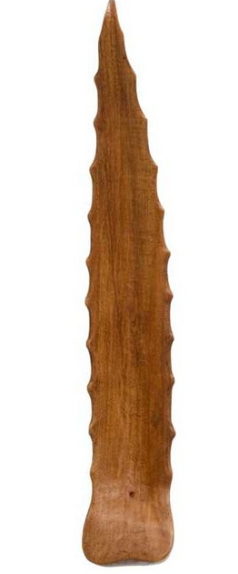 Handgefertigter Stickhalter in Form eines Aloe Vera Blattes, kunstvoll geschnitzt.