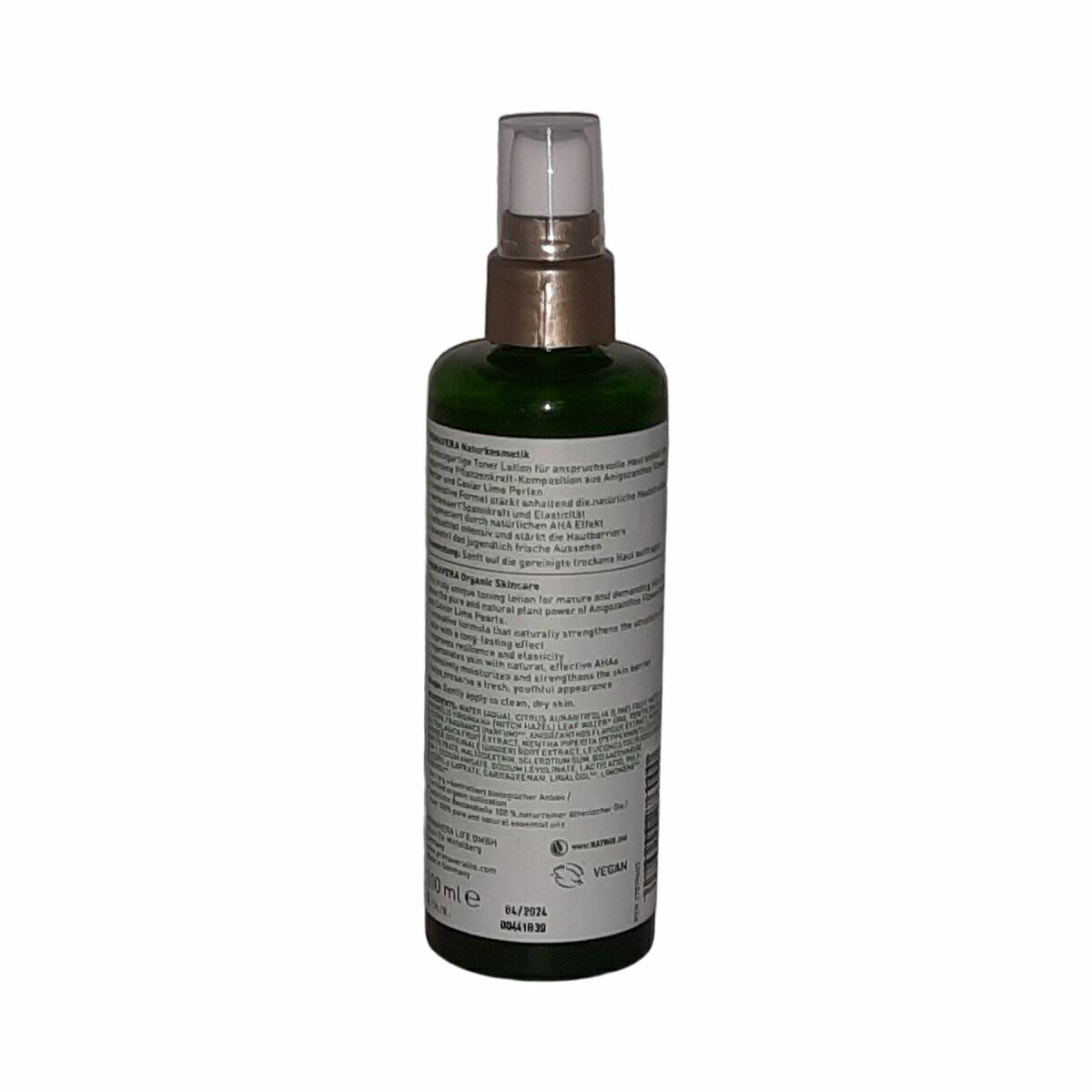 WATER (AQUA), ALCOHOL* ORG, CITRUS AURANTIFOLIA (LIME) FRUIT WATER* ORG, HAMAMELIS VIRGINIANA (WITCH HAZEL) LEAF WATER* ORG, PENTYLENE GLYCOL, GLYCERIN, FRAGRANCE (PARFUM)**, ANIGOZANTHOS FLAVIDUS EXTRACT, MICROCITRUS AUSTRALASICA FRUIT EXTRACT, MENTHA PIPERITA (PEPPERMINT) LEAF EXTRACT, ZINGIBER OFFICINALE (GINGER) ROOT EXTRACT, LEUCONOSTOC / RADISCH ROOT FERMENT FILTRATE, MALTOCEXTRIN, SCLEROTIUM GUM, BIOSACCHARIDE GUM-1, SODIUM ANISATE, SODIUM LEVULINATE, LACTIC ACID, POLYGLYCERYL-4 CAPRATE, CARRAGEENAN, LINALOOL**, LIMONENE**, EUGENOL*** BIO/ORG = kontrolliert biologischer Anbau/ certified organic cultivation